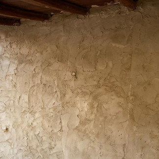 The walls showed signs of dampness and surface crumbling caused by infiltration of rainwater from the roof and by rising damp from the ground, aggravated by repairs made with cement which contributes to retaining damp in the walls. The roof consisting of beams, wooden planks and Canudo roof tiles, had been reinforced with a mesh of metal profiles with fibre cement under-tile plates, which, due to poor execution, gave way and allowed infiltration of rainwater along the walls. The floor slats, which are very porous, showed signs of wear and tear. The electrical installation was damaged by humidity in the walls.